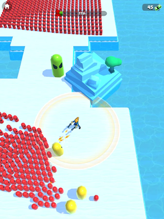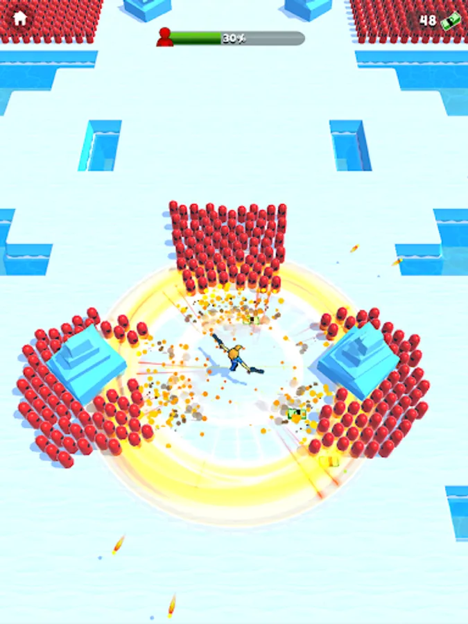 Move around with your character and shoot hundreds of enemies frantically. If you're good enough, you'll be able to trigger your firemode and eliminate dozens of them in one go.