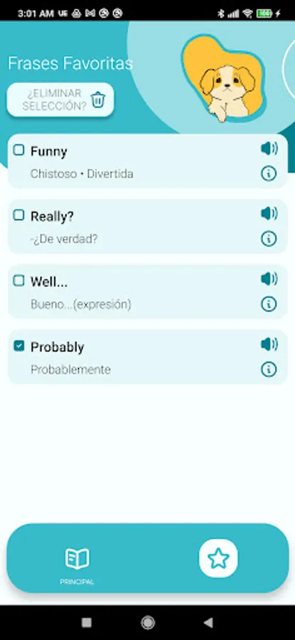 Save your favorite phrases and start applying them daily with the people around you. Read the descriptions in the App to learn more and complement it by watching movies and series in English from 5 to 20 minutes a day.