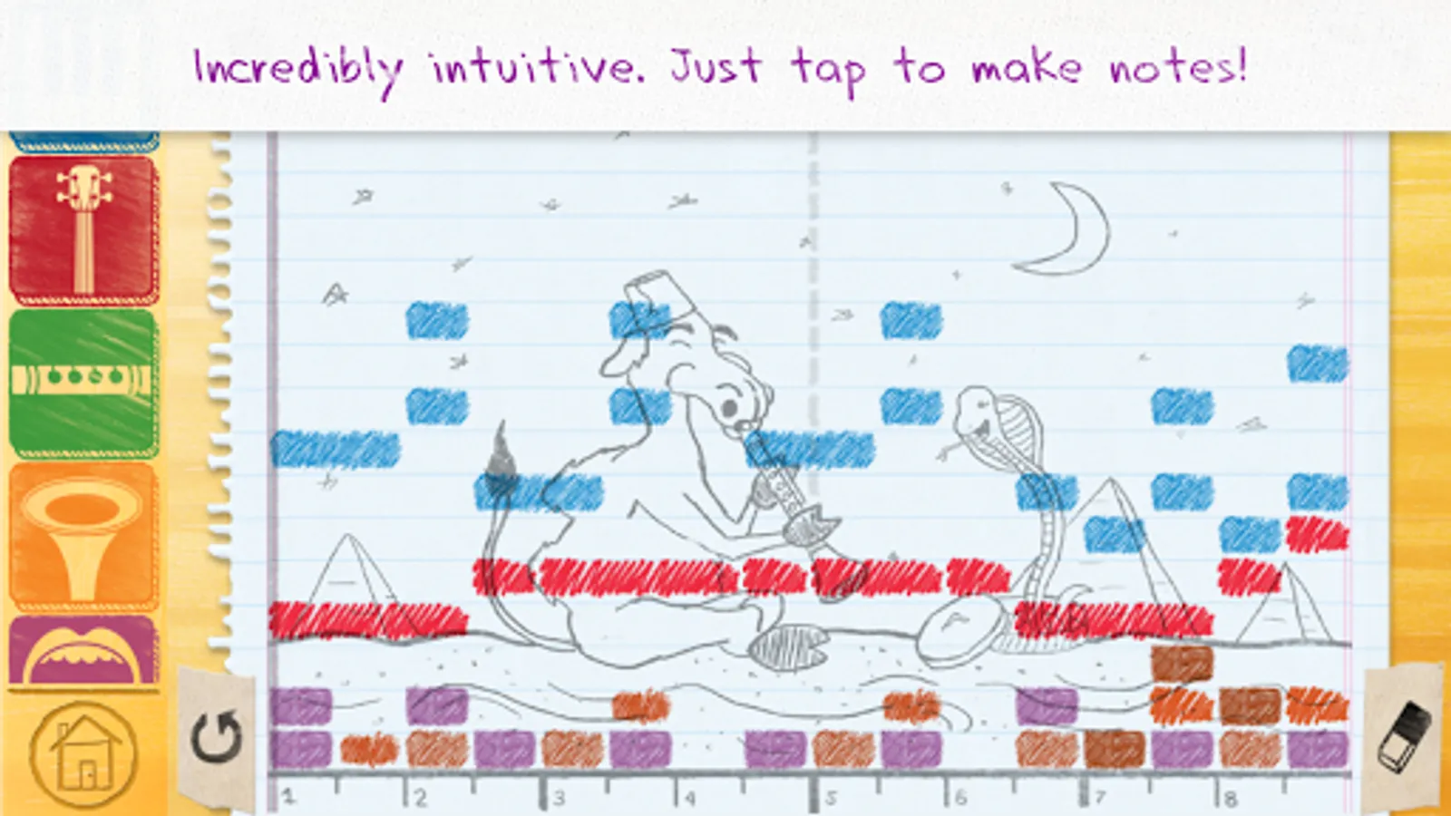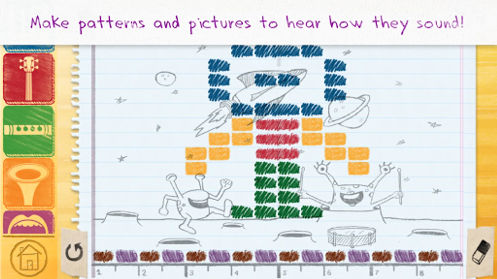 - Explore eight different sketchpads and characters, each with their own unique personality and sound.