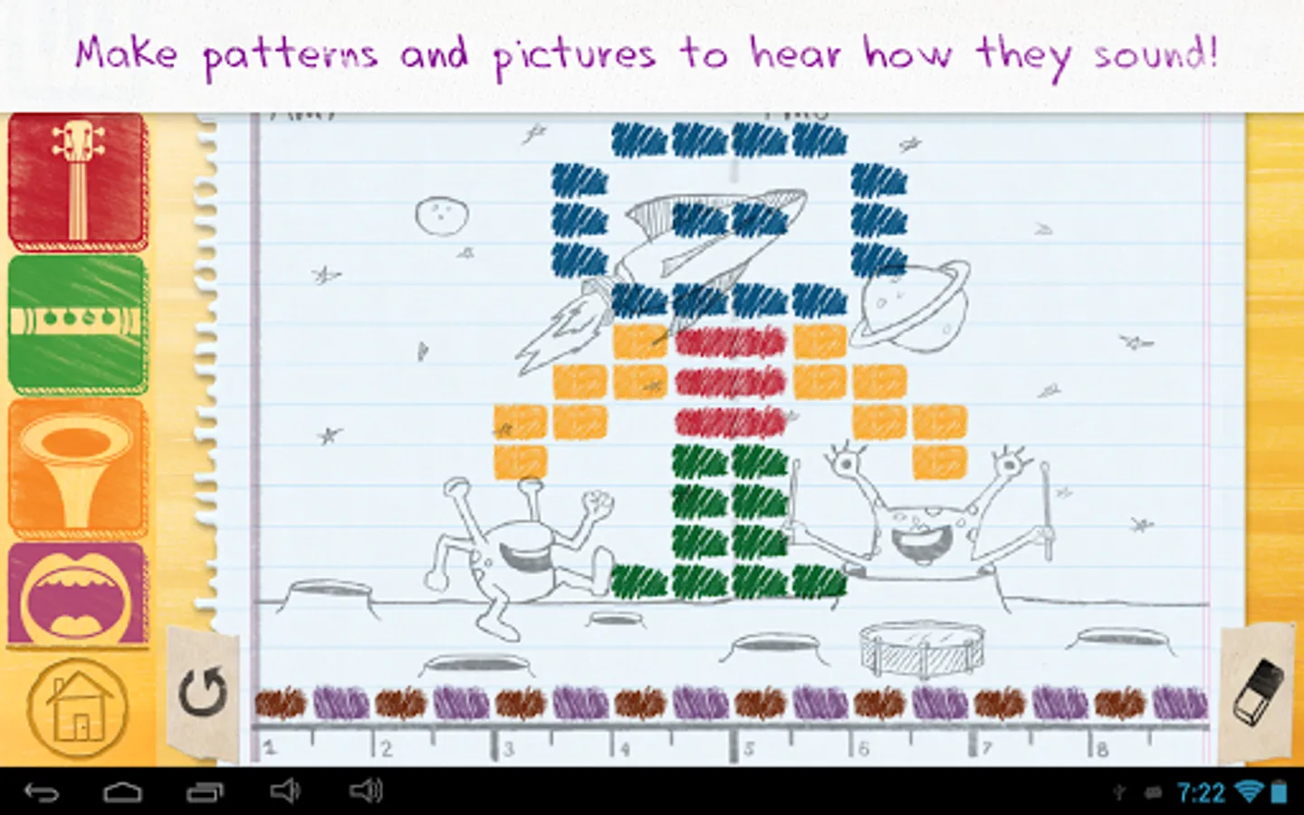 - Connect visual patterns with sounds using our colorful, intuitive interface.
