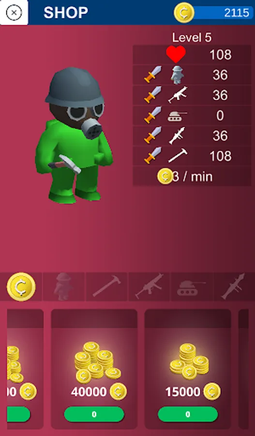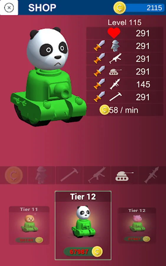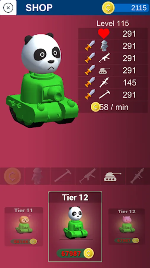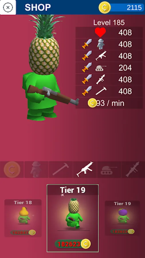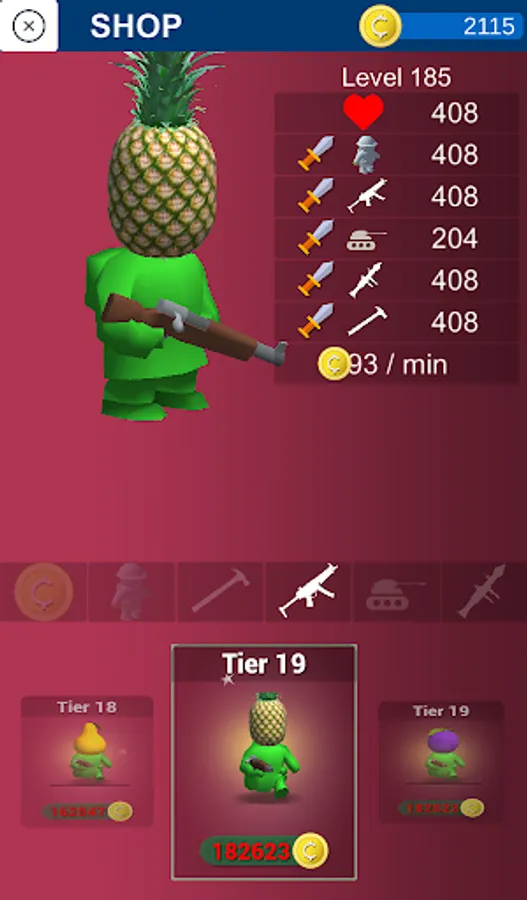 Upgrade the units frequently to fight the strong enemy, constantly buy new units to increase the level and to earn more idle coins.