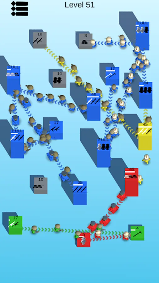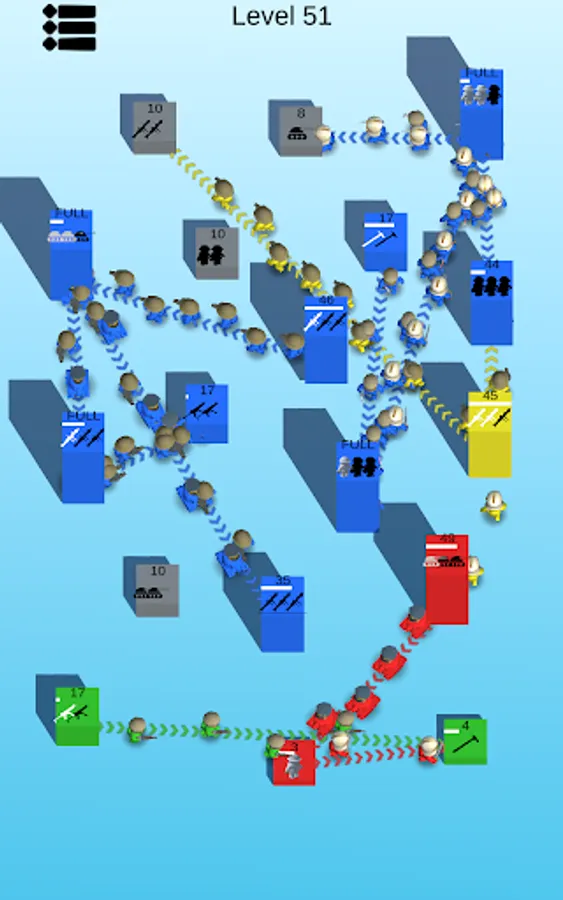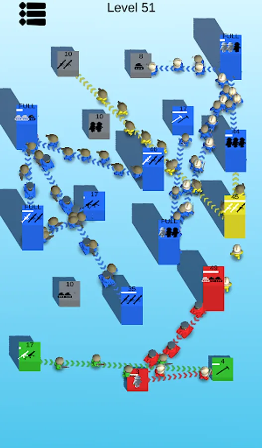 There are 5 types of unit including soldier, builder, gun, tank and bazooka.