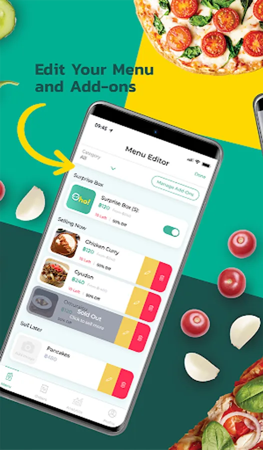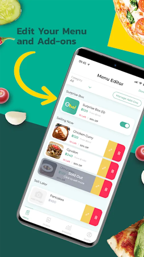 Upload surplus / promotional food to Oho! you can edit your menu and manage your inventory very easily