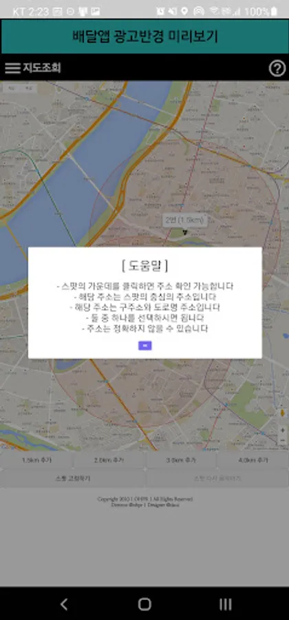 In addition, it is possible to estimate the advertisement exposure area of the ultra call (flag) product of Baedal Minjok.