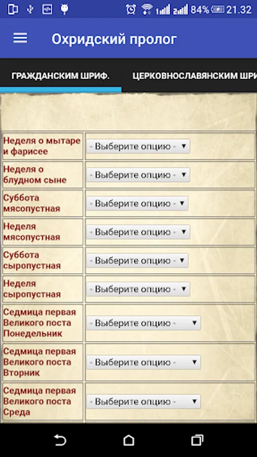 Orthodox Church Calendar - Ohrid Prologue on Every Day, Posni Triod, Flower Triod, Oktoih, Časoslov ...