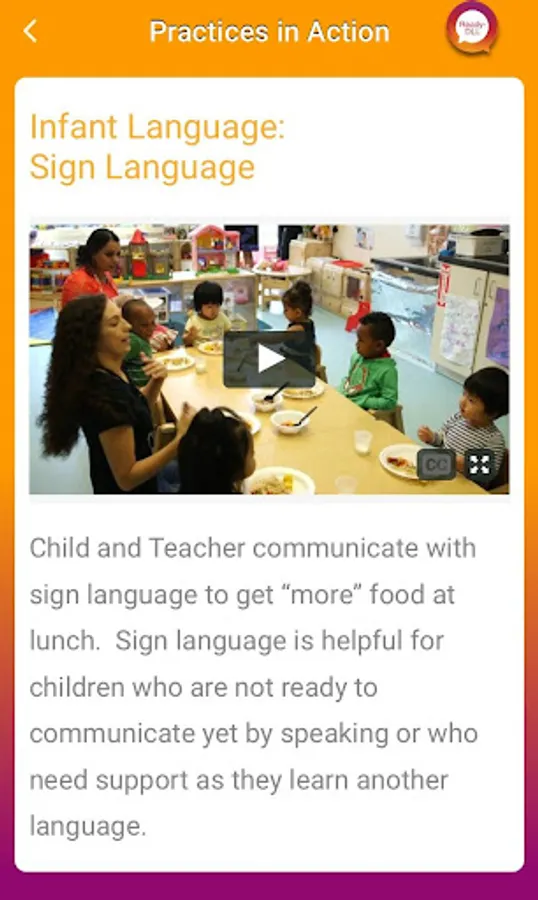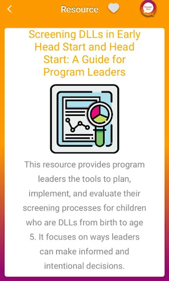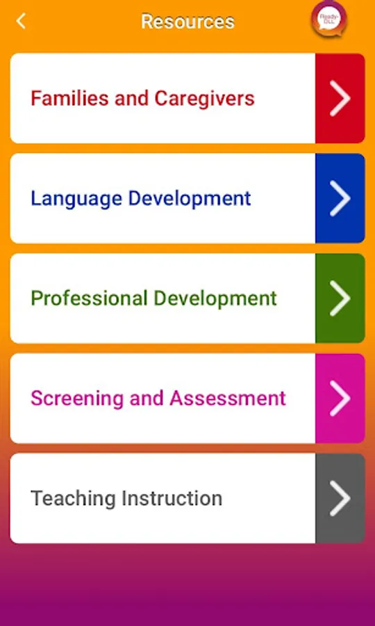 Ready-DLL is a mobile solution for Head Start and Early Head Start teachers and caregivers who want to access information, build rich language experiences, and implement strategies to support children who are dual language learners (DLLs). Using Ready-DLL, teachers can earn badges each week by completing different activities. Discover tips for setting up classrooms and learn survival words and phrases in seven languages to support children with diverse home languages. The app provides on-the-go access to DLL resources and videos showcasing effective teaching practices.