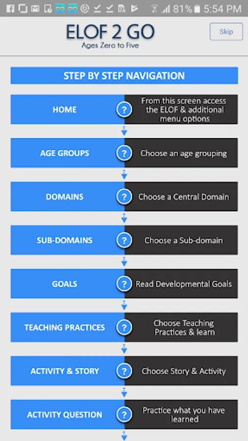 The ELOF2GO app is a mobile resource for teachers who want to access and learn more about the Head Start Early Learning Outcomes Framework (ELOF). The app provides on-the-go access to the ELOF goals for children and effective practices in support of those goals. Designed for teachers, family child care providers, and home visitors.