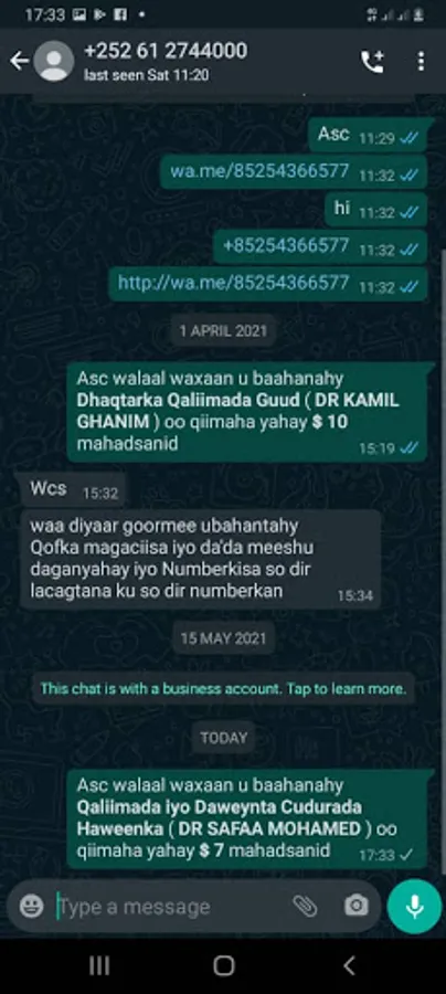 4. Inaad si fudud Whatsapp iyo Wicitaan ula soo xiriiri karto Isbitaalka
