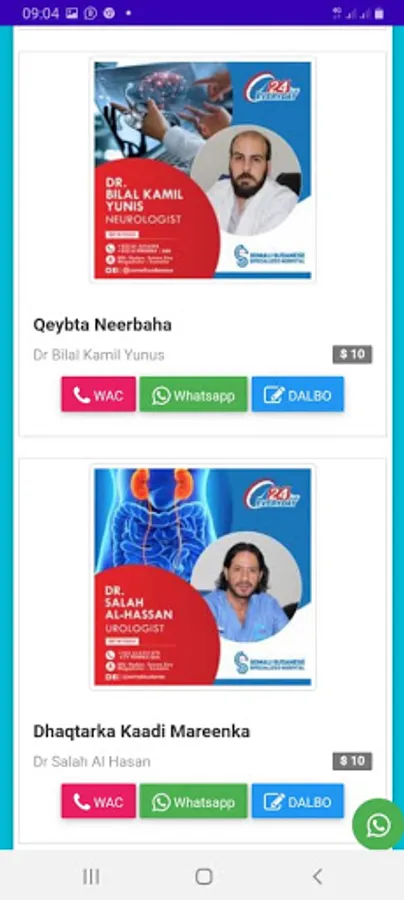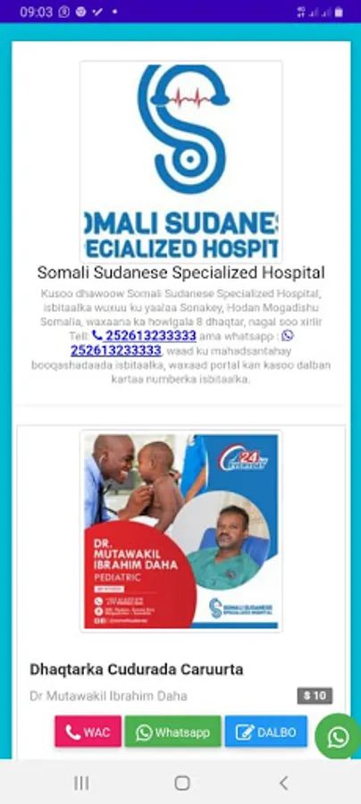 4. Inaad si fudud Whatsapp iyo Wicitaan ula soo xiriiri karto Isbitaalka