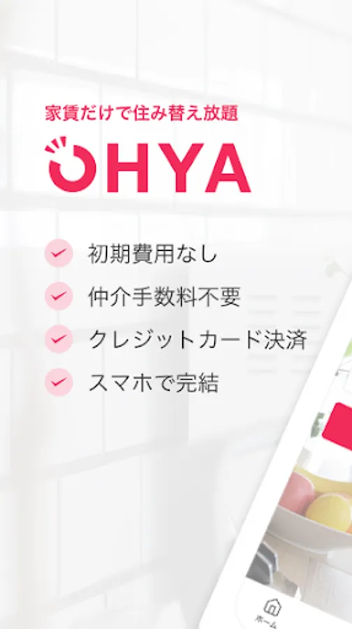 New rental service "OHYA" where you can change your home anytime with only initial rent and no rent. It is completed with a smartphone, and all the troublesome procedures such as store visit are unnecessary.