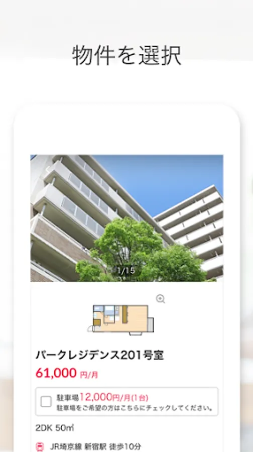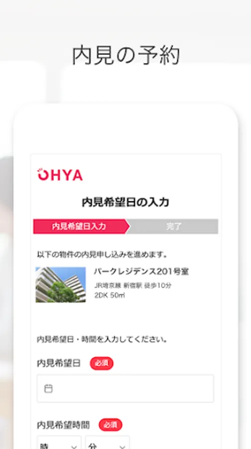 Without going to a real estate company, a single smartphone can complete a room search, an inside view reservation, a contract procedure, a settlement of rent, and an application for leaving.