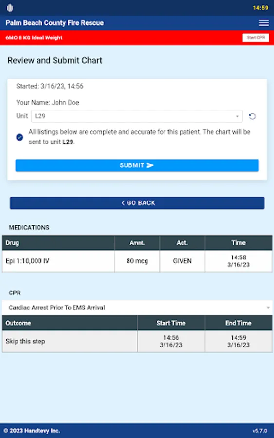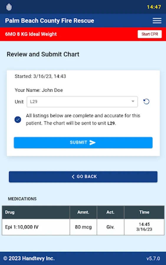The Handtevy Pediatric Resuscitation System is a client-only platform that enables EMS and hospital systems to treat and rapidly document the care for critically ill and injured patients safely and effectively. Customized dosing and equipment information is accessed via any mobile device and integrates seamlessly into the patient’s medical record. Handtevy Mobile is also equipped with ‘CPR Assist,’ a fully integrated and configurable cardiac arrest feature that provides the important audio and visual cues needed to run a cardiac arrest. EMS professionals and hospital teams can, for the first time, provide rapid and accurate dosing, while documenting their care in real time. Version 5.0 now includes protocol and checklist integration, which allows clinicians to sort medications by protocol while simultaneously providing real time access to protocol PDFs and configurable checklists.