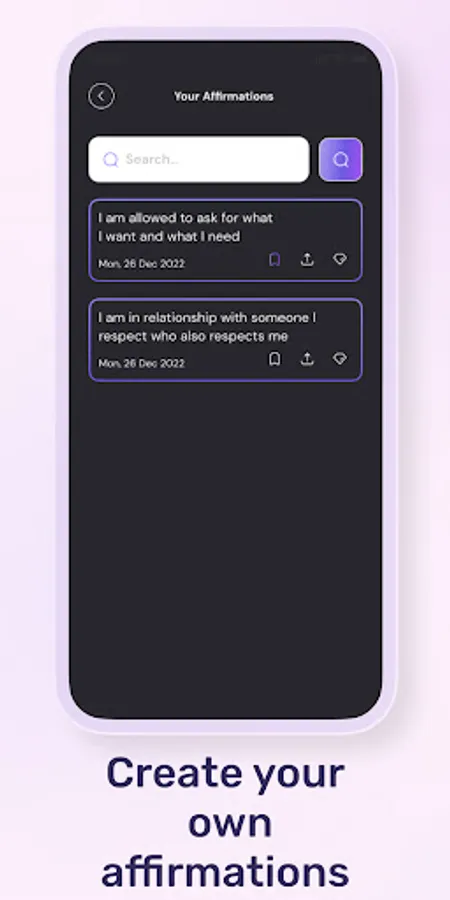 Users can set a reminder to receive a daily affirmation at a specific time of day. The app also features a journal function where users can record their thoughts and emotions related to the affirmation or motivational message they received.