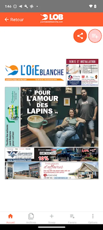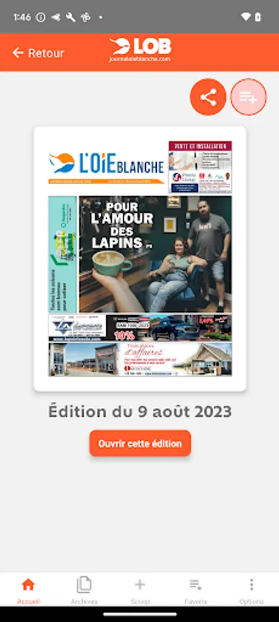 The free L'Oie Blanche app connects you to Côte-du-Sud information. Get the latest local news and check out the editions at any time!