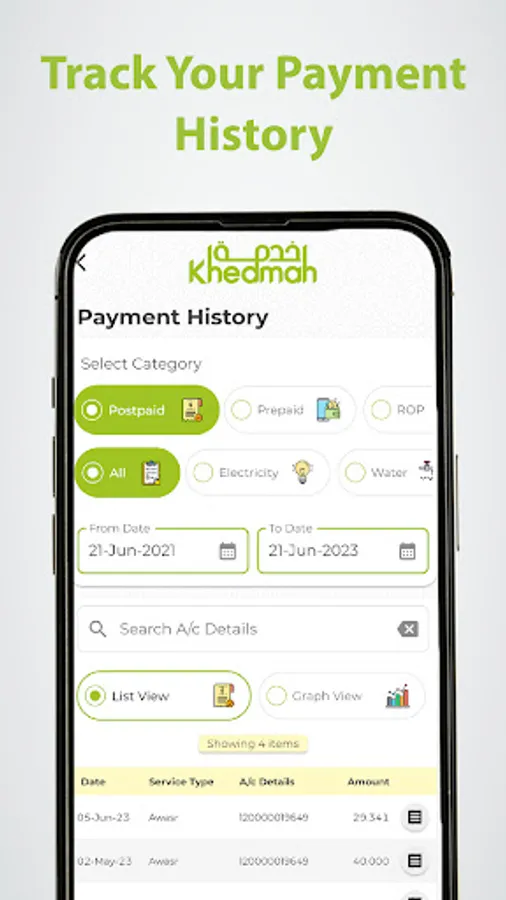 Khedmah mobile app offers easiest and fastest way to manage, view and pay Electricity and Water bills of Muscat Electricity Distribution Company - MEDC, Mazoon Electricity Company - MZEC, Majan Electricity Company - MJEC, Rural Areas Electricity Company - RAECO, Dhofar Power Company - DPC and Public Authority of Electricity & Water. PASI subscription fees. Post paid telecom bills of Omantel, Ooredoo & AWASR.