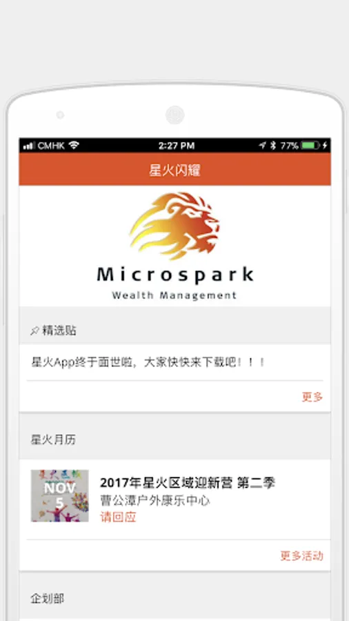 欢迎下载“闪耀星火”,也恭喜你成为我们星火大家庭的一员!在这里你可以掌握星火团队最新的消息通知,报名参加团队的精彩活动,查看公司最新发布的产品资料和市场讯息,更可以和你的同事及经理实时通讯,并发布最新的个人动态!