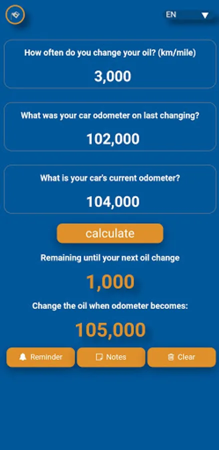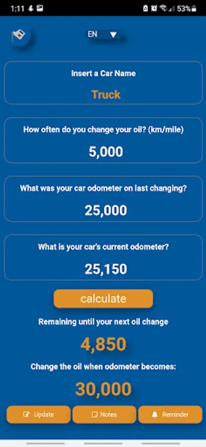 - Optionally be reminded when your Vehicle needs its next Oil Change.