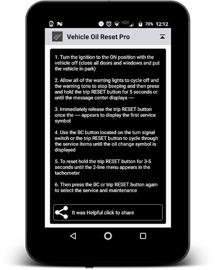 Vehicle Oil Reset Pro is free app to reset oil of your vehicle with simple steps