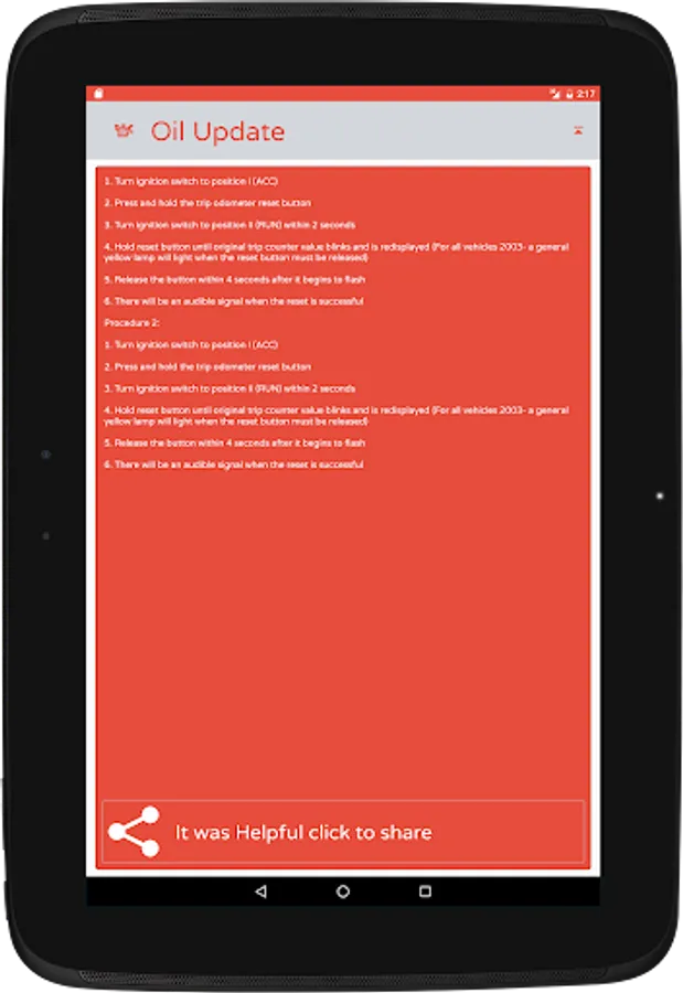 Oil Update is the app which helps you to find your vehicle manual to update your oil,