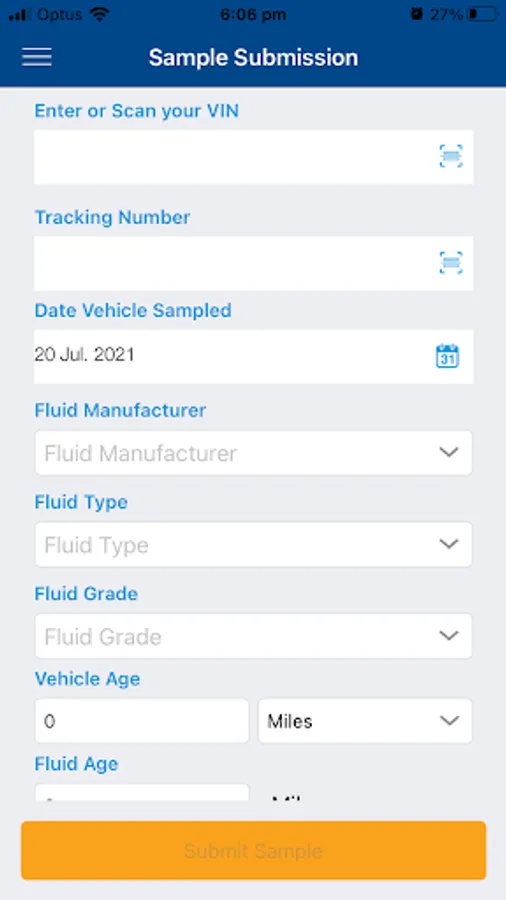 The OilVue app is required to complete your oil analysis sample information. Use the VIN lookup to pre-fill your vehicle’s year, make, and model.