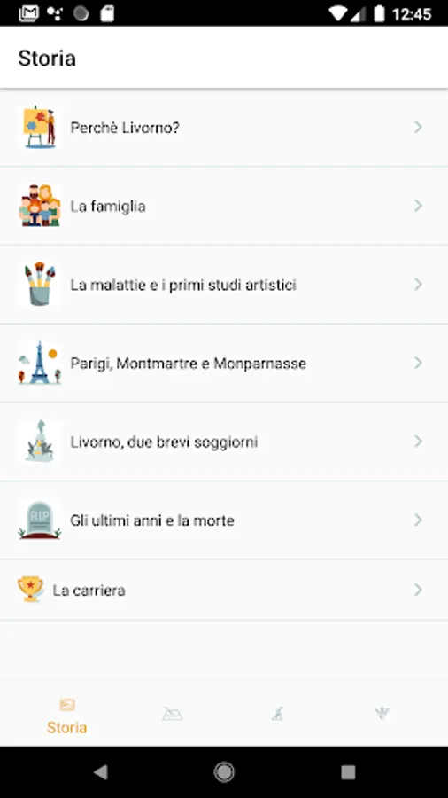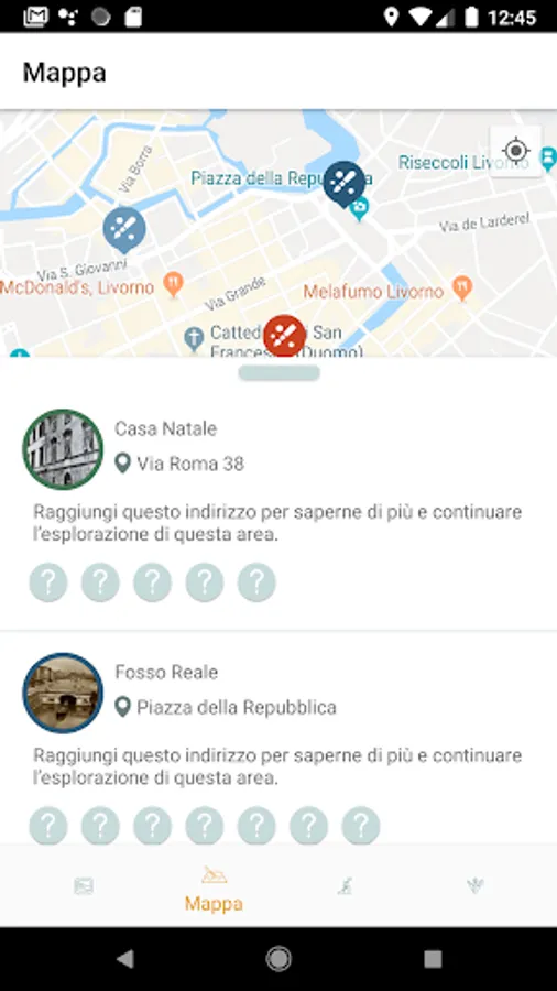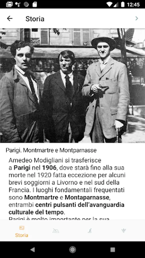 The Map helps you search for Modigliani's places in Livorno. The map shows you only a few places, around them are hidden other places and you have to go to search them, exploring the city. Each point of interest gives you access to a text that tells which episode or important character in Modigliani's story is connected to that specific place.