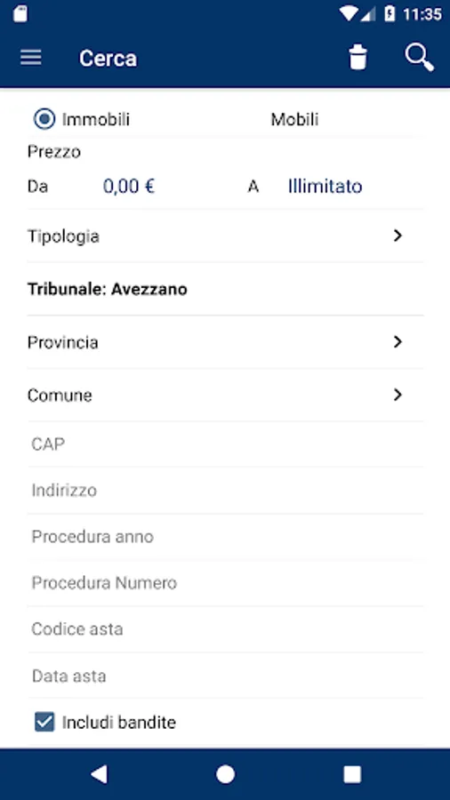 With the App of the Court of Avezzano you can also consult all judicial sales promoted at the Tribunal, and in particular it can: