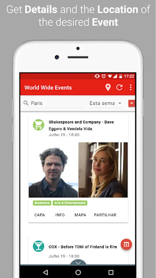 ✔ Find Events/venues divided in 20 categories: Music 🎵, Sports 🏆, Shopping 🎁, Travel ✈, Entertainment 🎮, ...