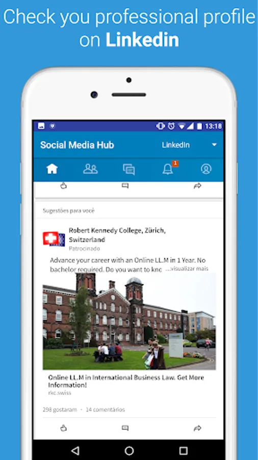 ✔ Professional network 🎓 is present with News feed, Messages, Profile just like the official App.