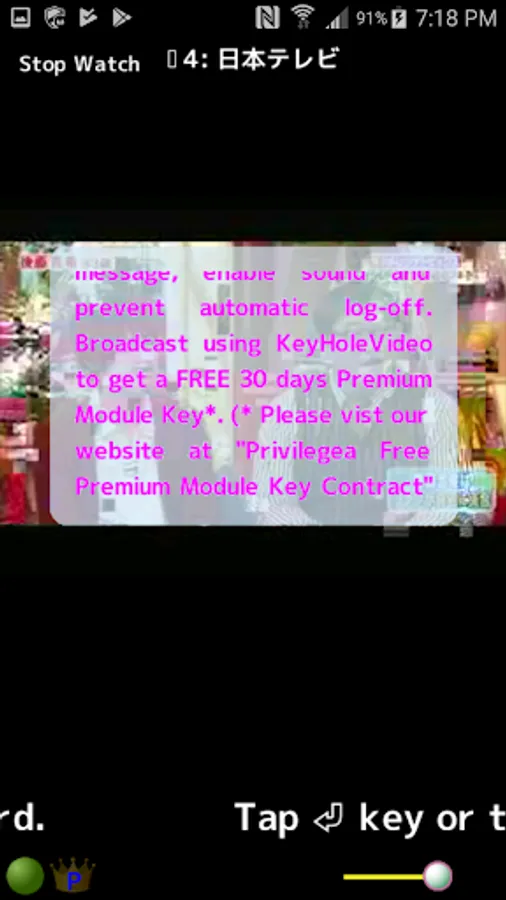 watch and listen distributed contents by KeyHoleVideo users. Premium Module Key is required for full service. The getting Premium Module Key needs to buy it or distribute a video/audio program by KeyHoleVideo. All video/audio programs are TV or radio public broadcasting program which KeyHoleVideo users live. The contents of the video/audio are controlled by the system manager.