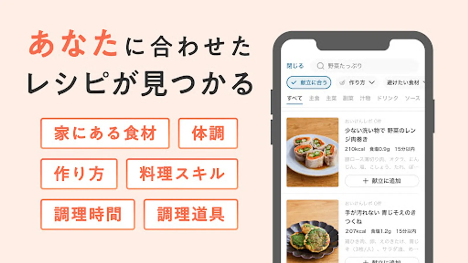 Through about 10,000 recipes supervised by registered dietitians, Oishi Kenko will help you create meals that meet various problems such as diet, pregnancy, diabetes and cancer.