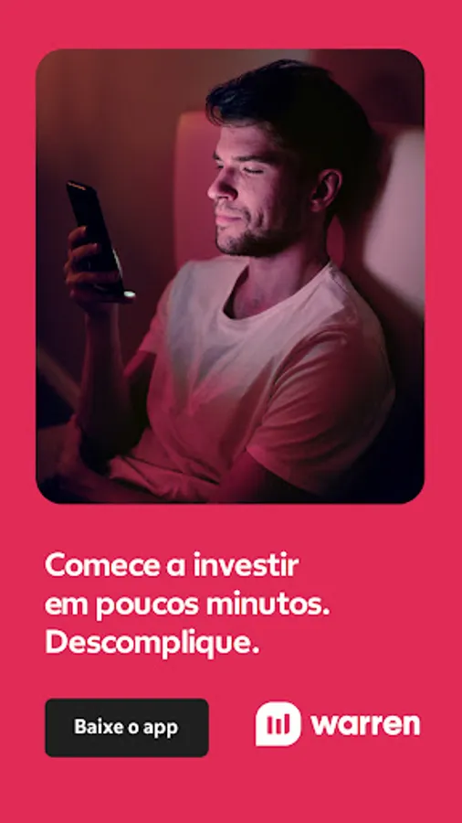 It's time to invest with Warren. Organize your investments by objectives and watch the money yield while you do what you like. Follow your evolution with much more practicality, solve your doubts with specialists and pay up to 3x less than in banks and other brokerages. At Warren, investing becomes an experience that is smart, safe and aligned with you.
