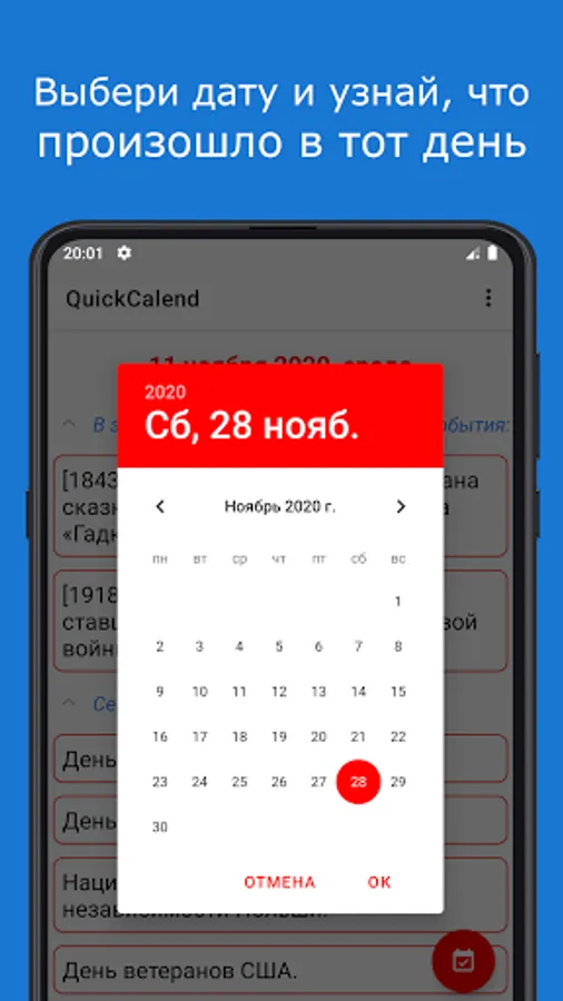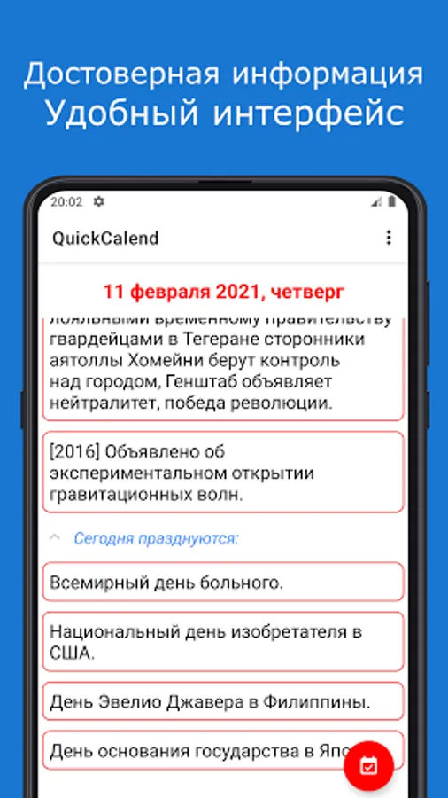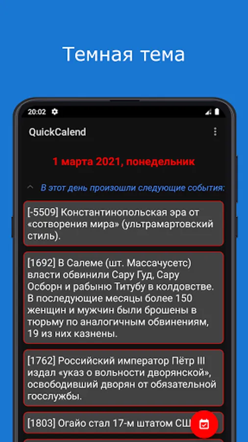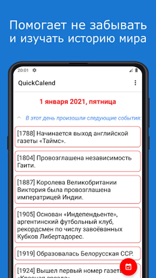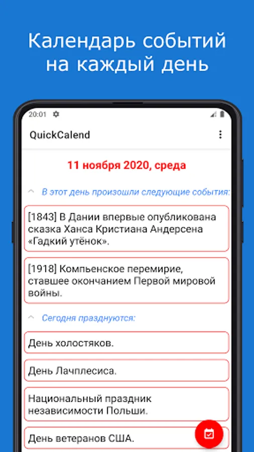 QuickCalend - a calendar of events for each day.
