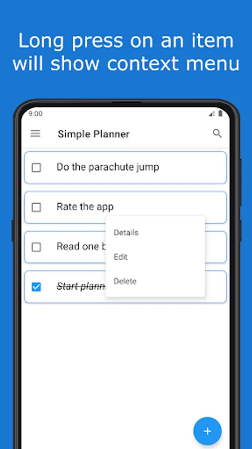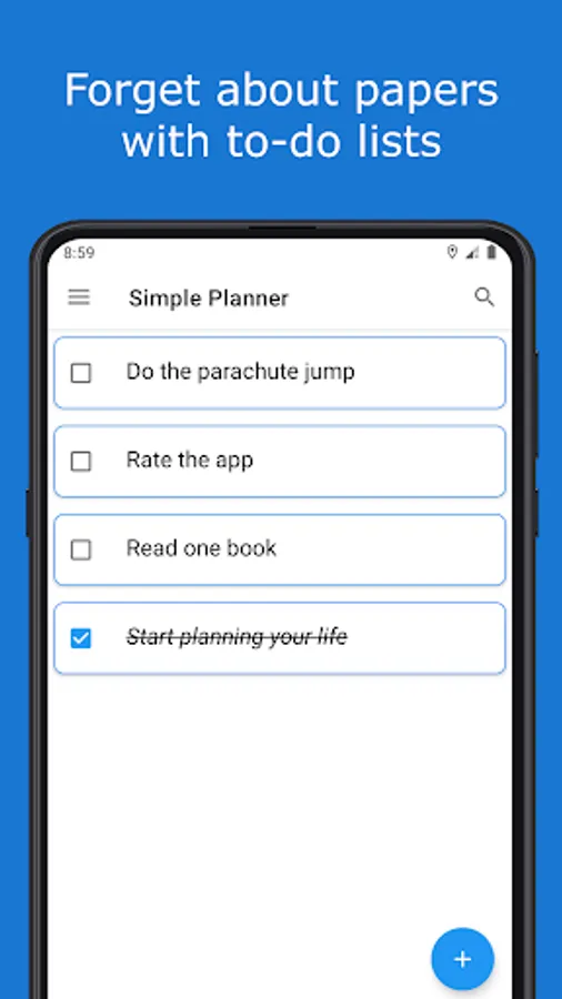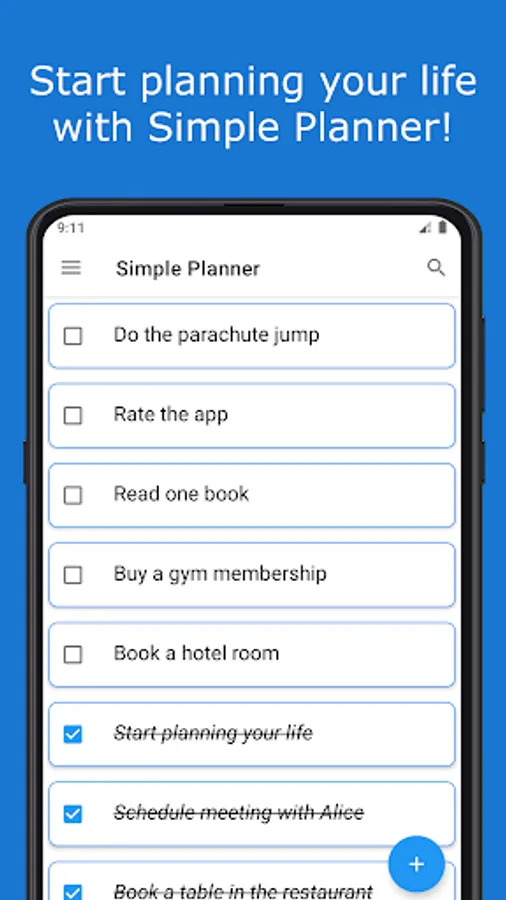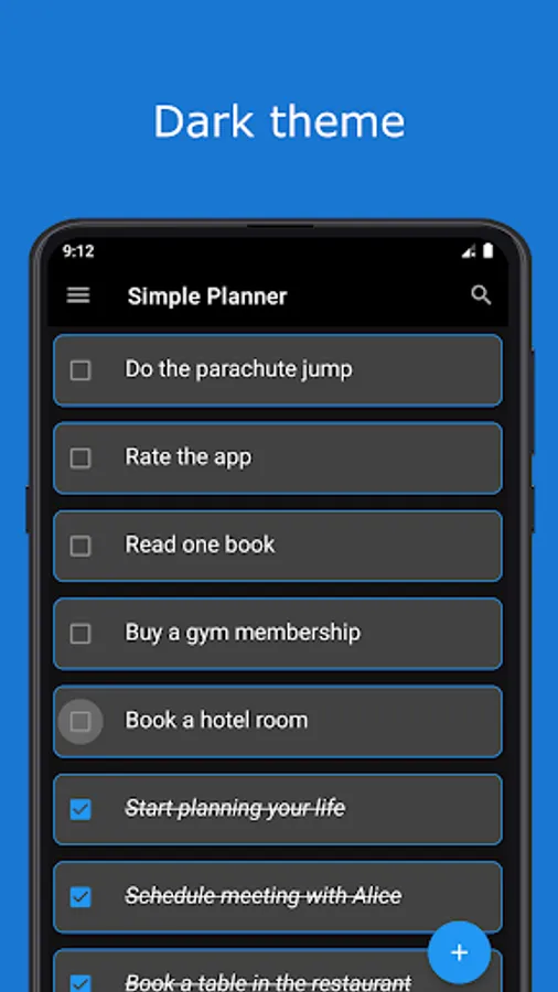 With Simple Planner you can easily organize lists of shopping, movies to watch, things to do.