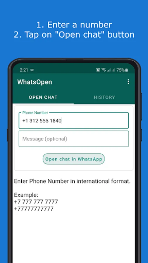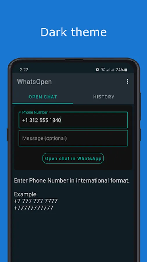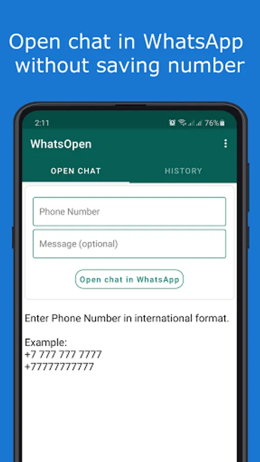 WhatsOpen helps you to start chatting without saving number.