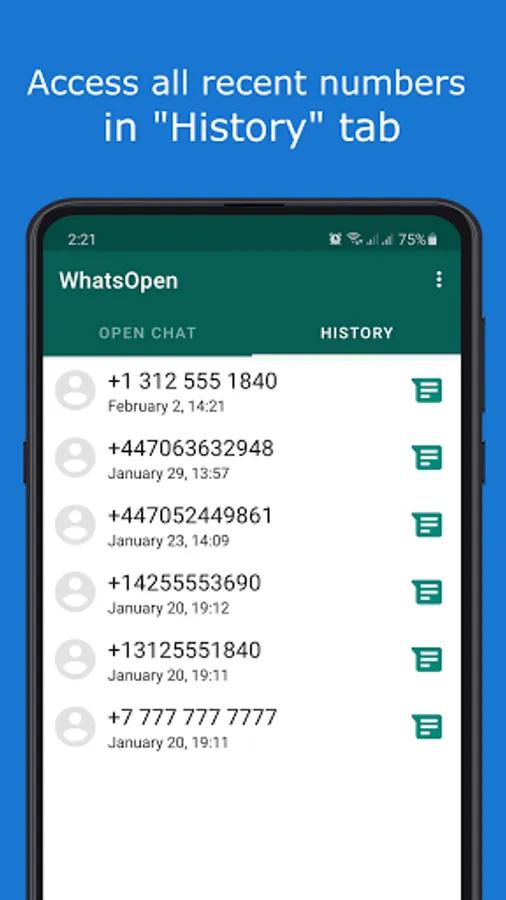 - Access all recent numbers in "History" tab