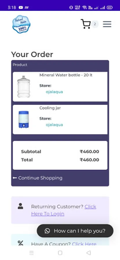 This app is for ordering fresh mineral water.