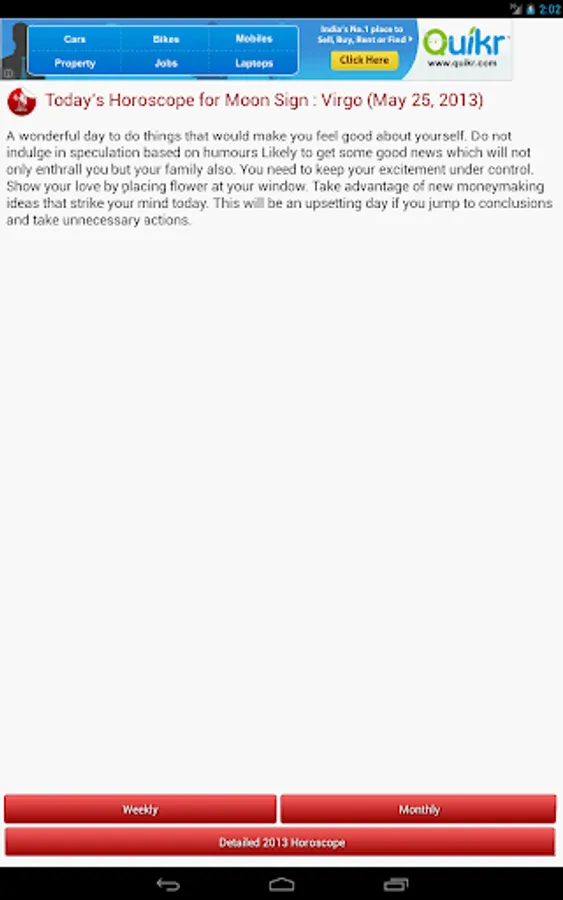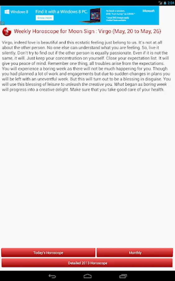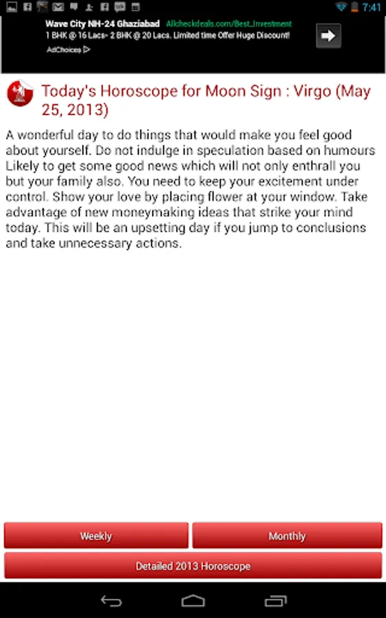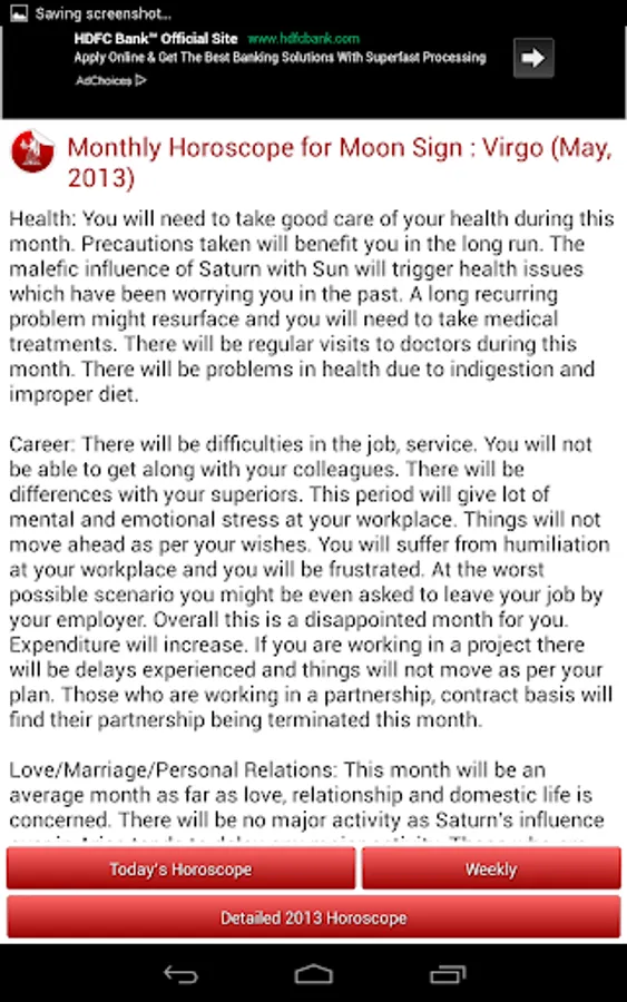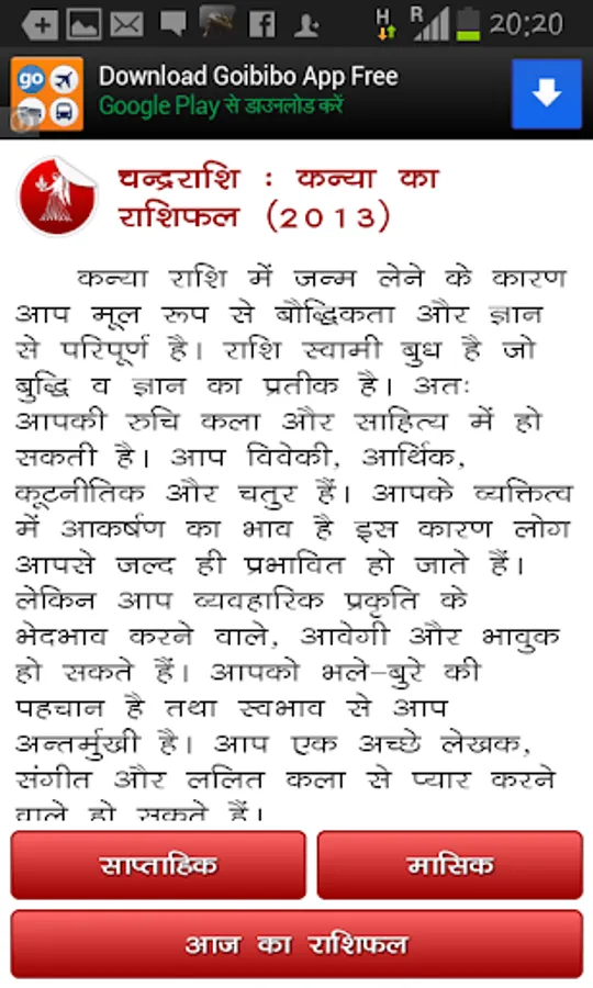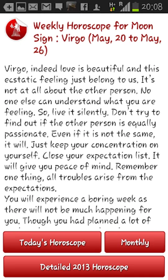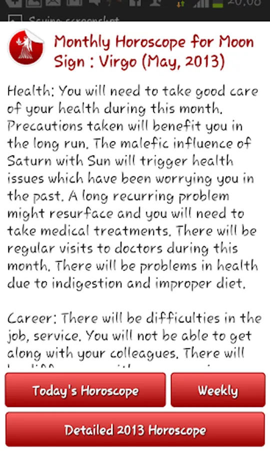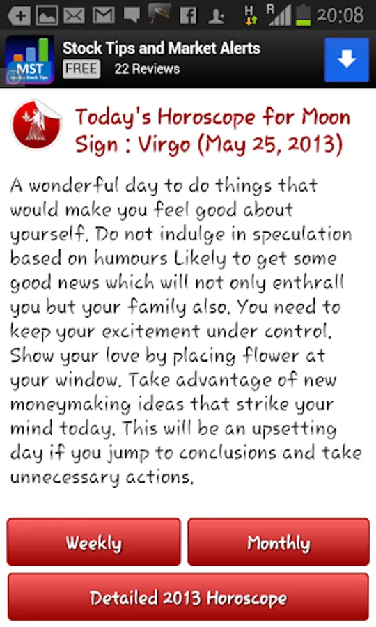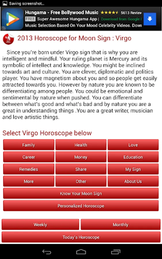 Select from your zodiac sign Aries, Taurus, Gemini, Cancer, Leo, Virgo, Libra, Scorpio, Sagittarius, Capricorn, Aquarius, and Pisces. All horoscopes are based on Vedic astrology Moon Signs and if you do not know your moon sign, no worries, app will find it out for you.
