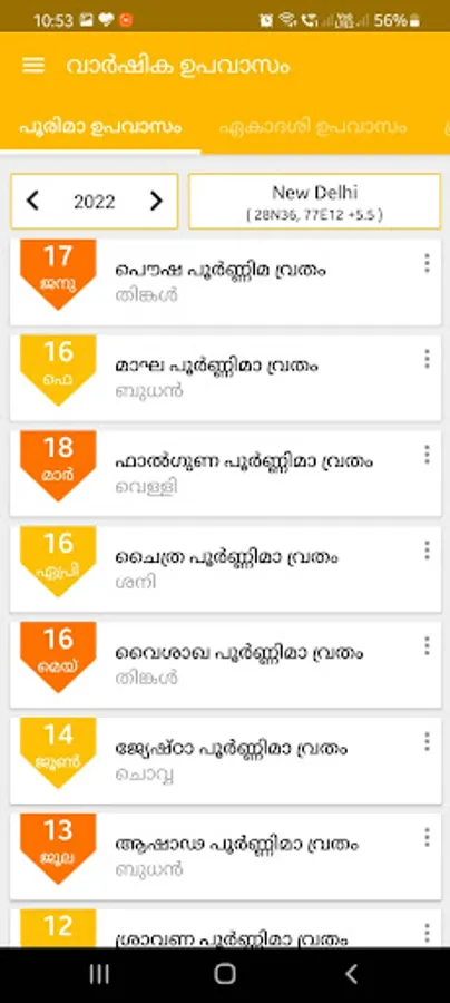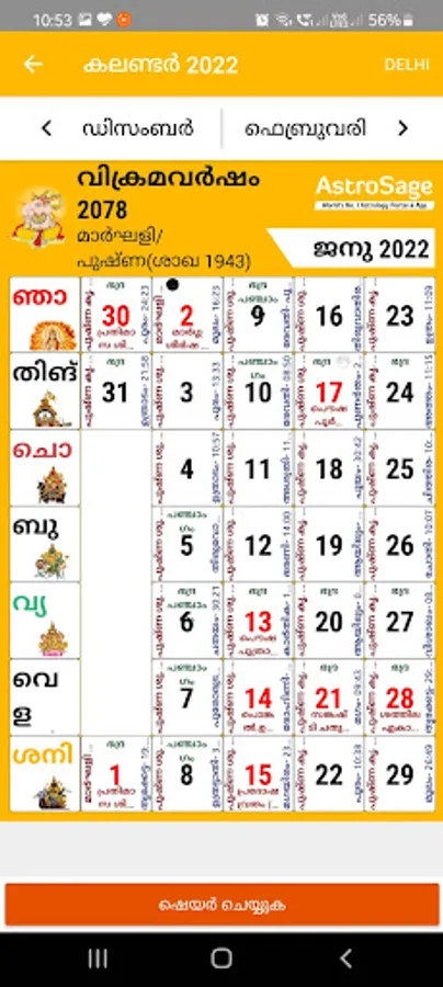 “Malayalam Calendar 2022” is one of the significant online Panchangam. This app is available for all the Android devices with all the basic features of an endemic calendar. You can also view the whole list of all Indian festivals, holidays, Malayalam fasting days and Horoscope 2022 predictions. In this Malayalam Calendar 2022 app, you can also view the tithi, vaar, Purnima (full moon) and Amawasya (no moon) day in every month.