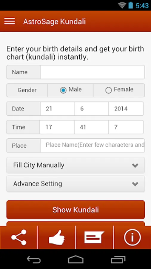 AstroSage presents a new Kundali making, horoscope making, rashifal and astrology app. Getting your personalised horoscope and rashifal based on Vedic astrology was never so easy before this app. This app is available in Hindi language apart from English.