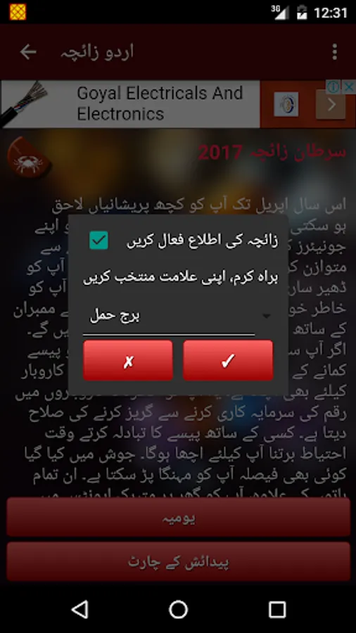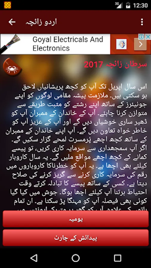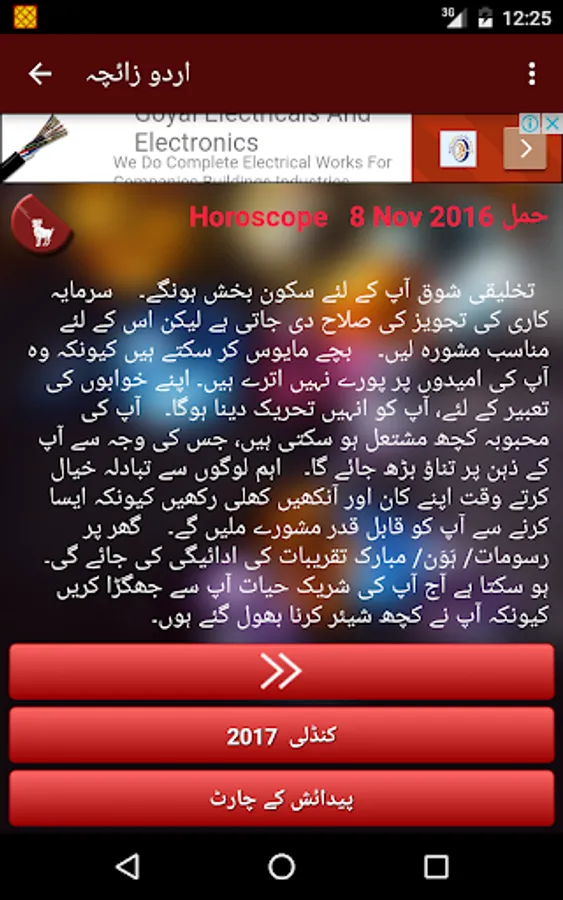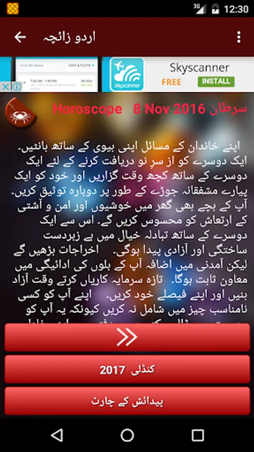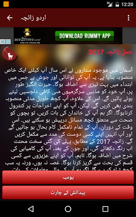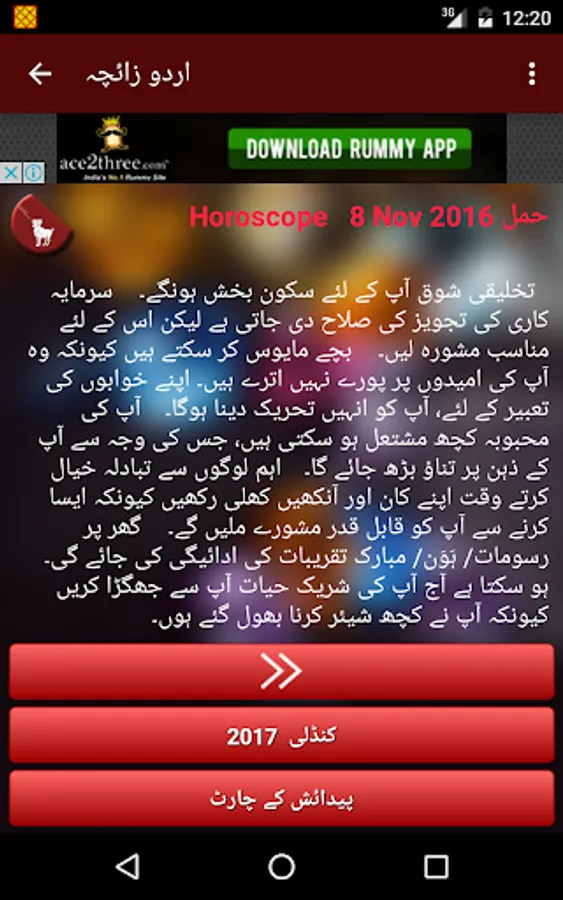 This application اُردو زائچہ (Horoscope in Urdu) is based on the principles of Vedic Astrology. Our “Urdu Horoscope” tells you how each day is going to be for you from different perspectives such as love, family, finance, success and prosperity etc. The daily horoscope in Urdu given here will help you prepare better for the day and help you get most out of it. Other than daily horoscope, yearly horoscope i.e. Urdu Rashifal 2018 is also available here for all zodiac signs. You may read our today’s horoscope to avoid potholes and tread the path without difficulties. Today’s horoscope given here is prepared by our astute astrologers to give you best of astrological suggestions every day.