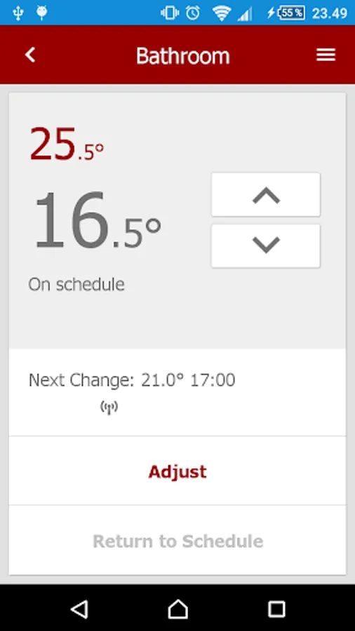 View and change your heating schedule: One of the key benefits of your OJ Microline® Touch thermostat is its schedule function, where the thermostat automatically adjusts heating levels to match your usual timetable. However, sometimes you need a bit of flexibility, and this app lets you override the schedule to adjust temperatures as you wish – from any location including your home.