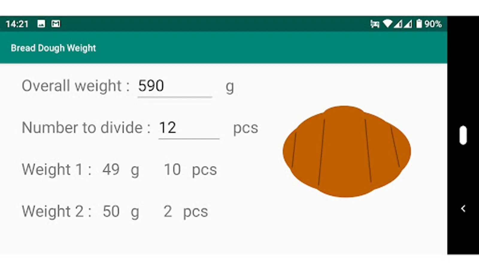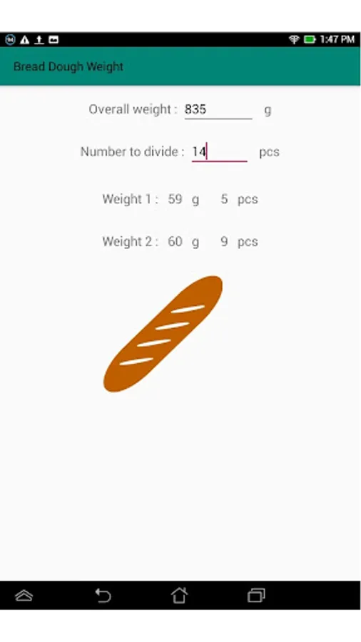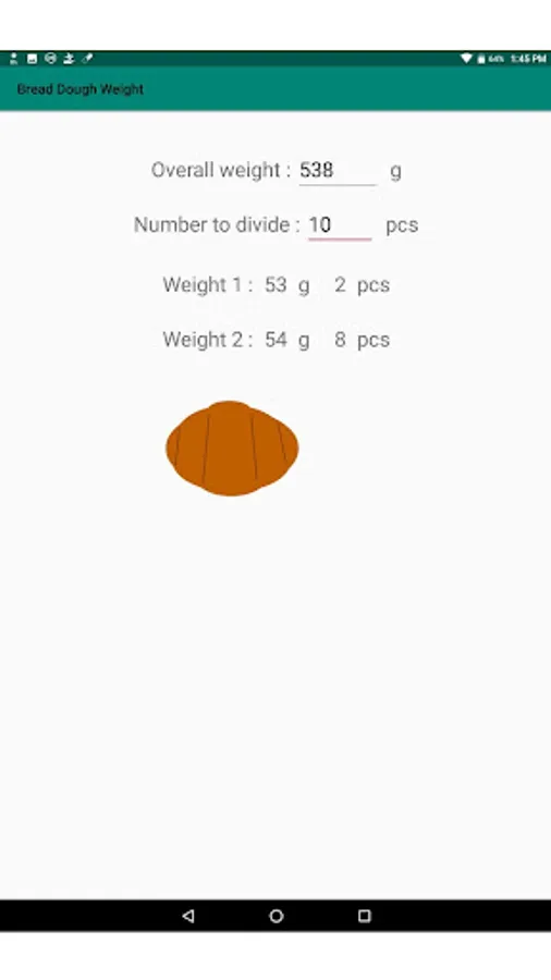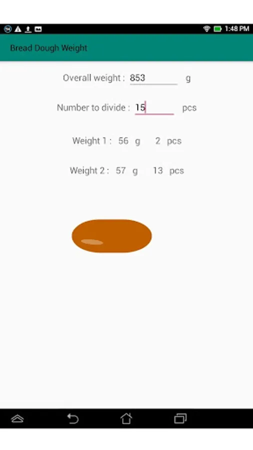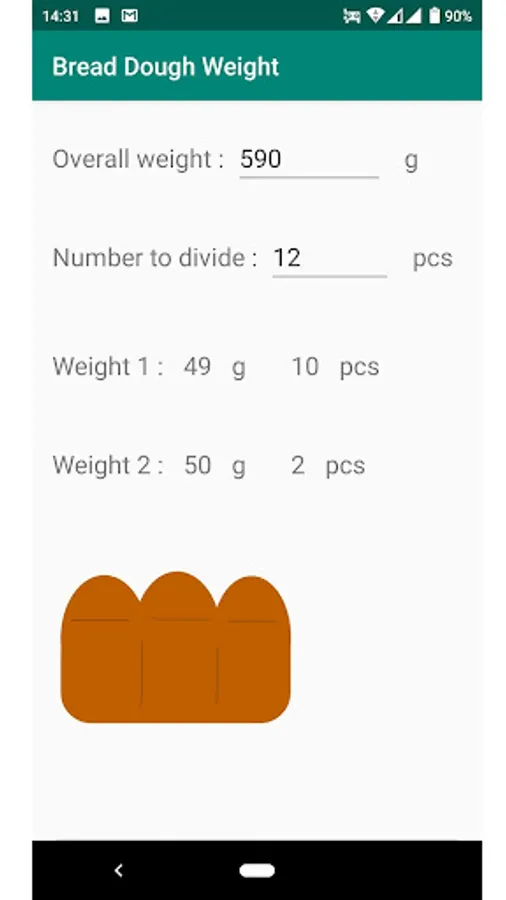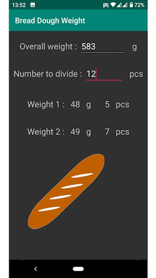 This app calculates the weight and number of dough to divide in 1 gram units. Let's divide the dough while measuring them.