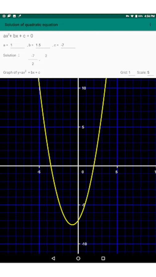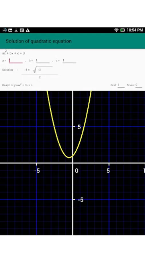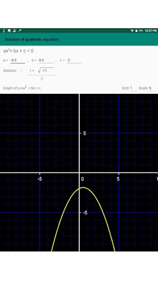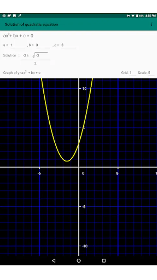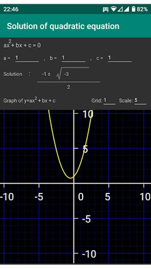 If you enter the coefficients freely, the solution of the quadratic equation will be calculated as roots and fractions.