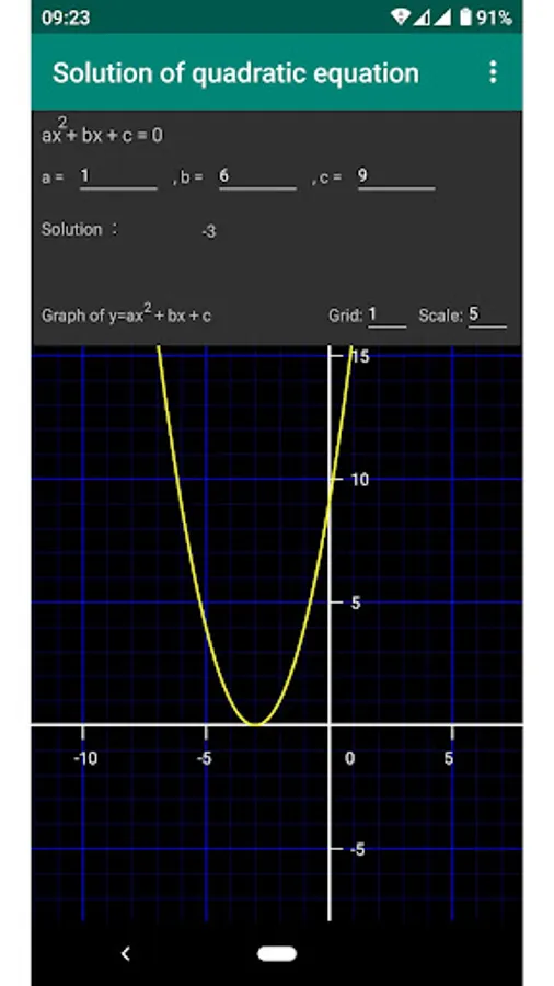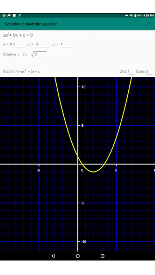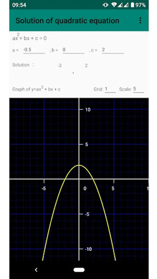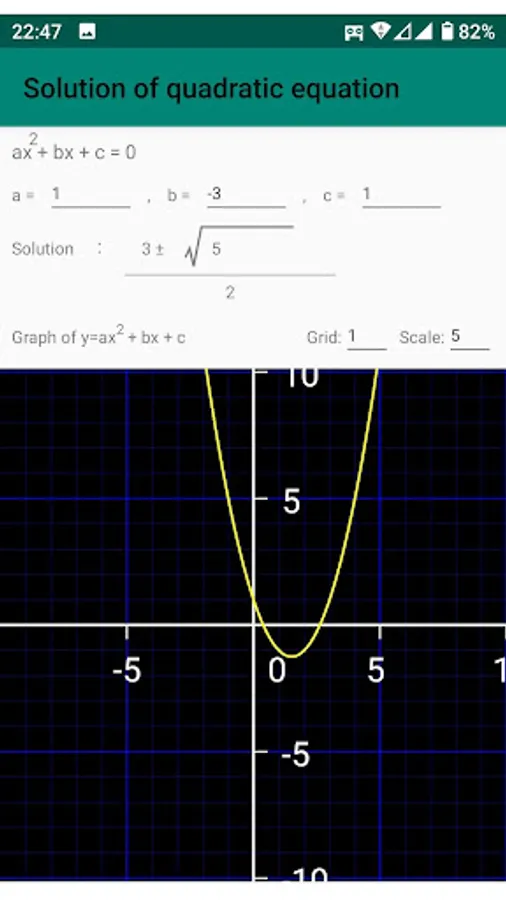 A graph of the quadratic function is drawn using the values you enter.