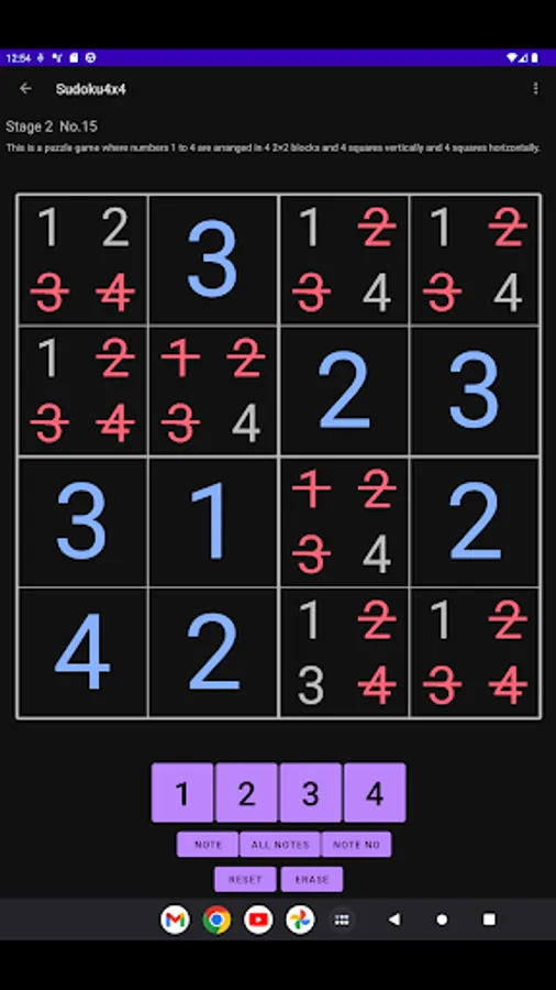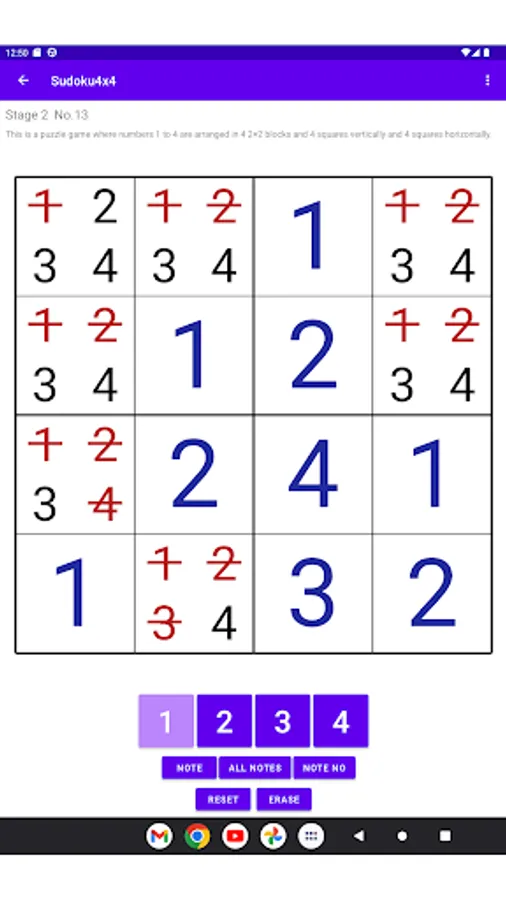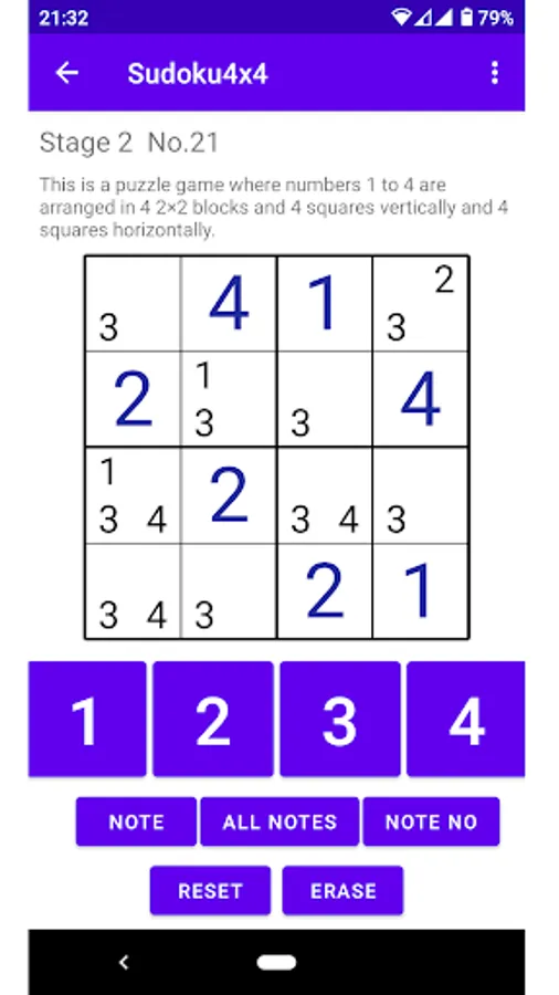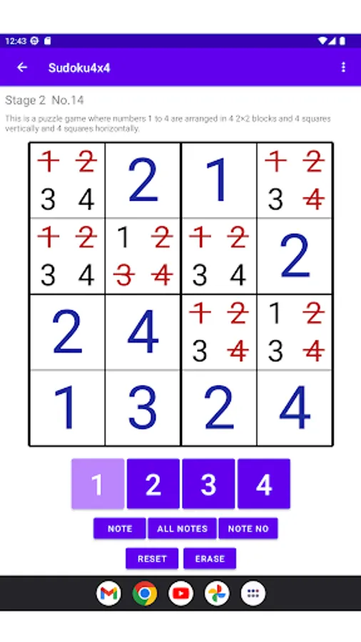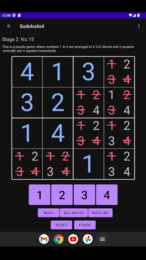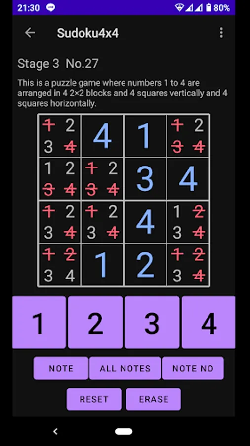 All 4x4 Sudoku puzzles are presented, and if you can solve all the problems in this app, you should be able to solve any 4x4 Sudoku.