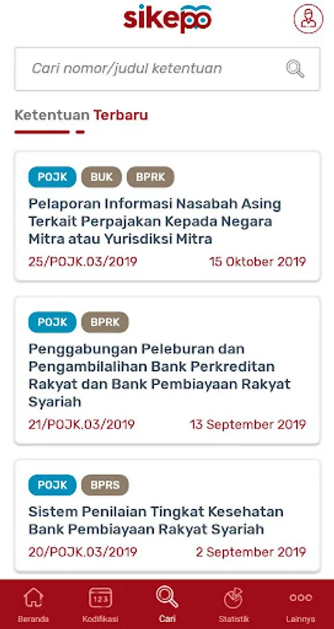 SIKePO merupakan aplikasi pencarian ketentuan perbankan yang dapat diakses secara online oleh pengguna (baik internal OJK maupun pihak eksternal). SIKePO memuat informasi mengenai kodifikasi ketentuan perbankan yang disusun secara sistematis dan komprehensif berdasarkan topik tertentu.