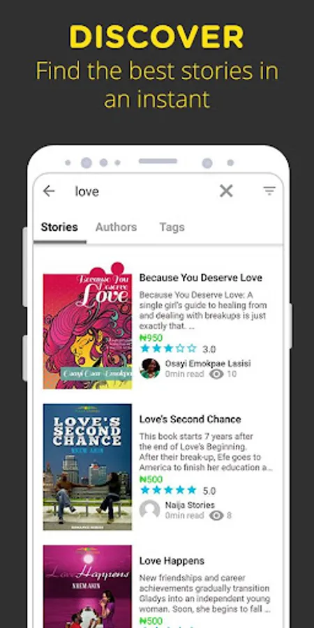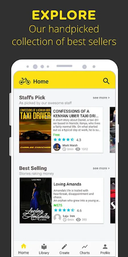 Become an author in less than 5 minutes. Publish your book(s) and gain income when you add a price tag on them. Write your story on the app or import them from a file and share with over 200,000 users. Build and increase your reader base all at no cost.