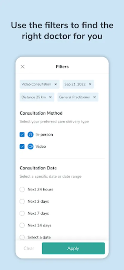 • Access the real-time availabilities of tens of thousands of healthcare professionals