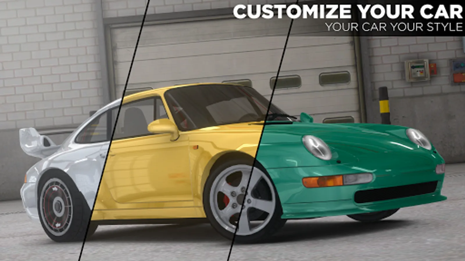 - Customize style of your car: color, rims, spoilers, hoods, bumpers and more.