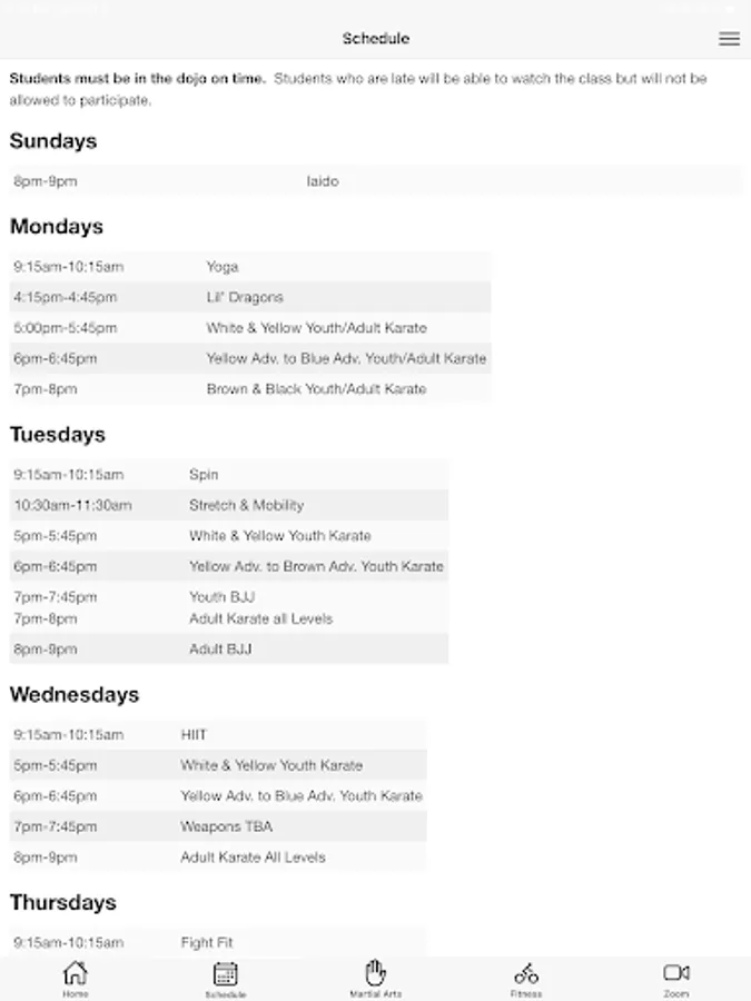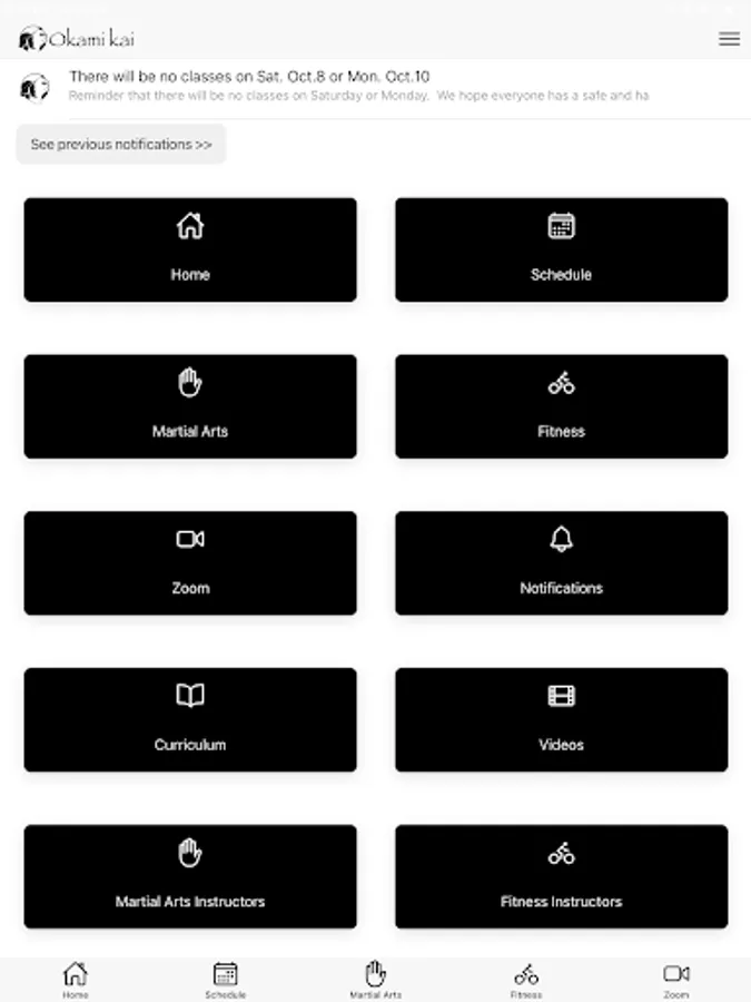 Get up-to-date schedule information for the Martial Arts & Fitness programs offered by Okami Kai, study your Karate curriculum, and see information on your favourite instructors. Turn on push-notifications for announcements and reminders.